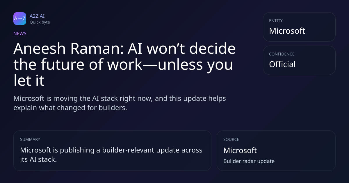 Aneesh Raman: AI won’t decide the future of work—unless you let it Why it matters: Microsoft is moving the AI stack right now, and this update helps explain what changed for builders. Source: Microsoft https://a2zai.ai/bytes/aneesh-raman-ai-won-t-decide-the-future-of-work-un...