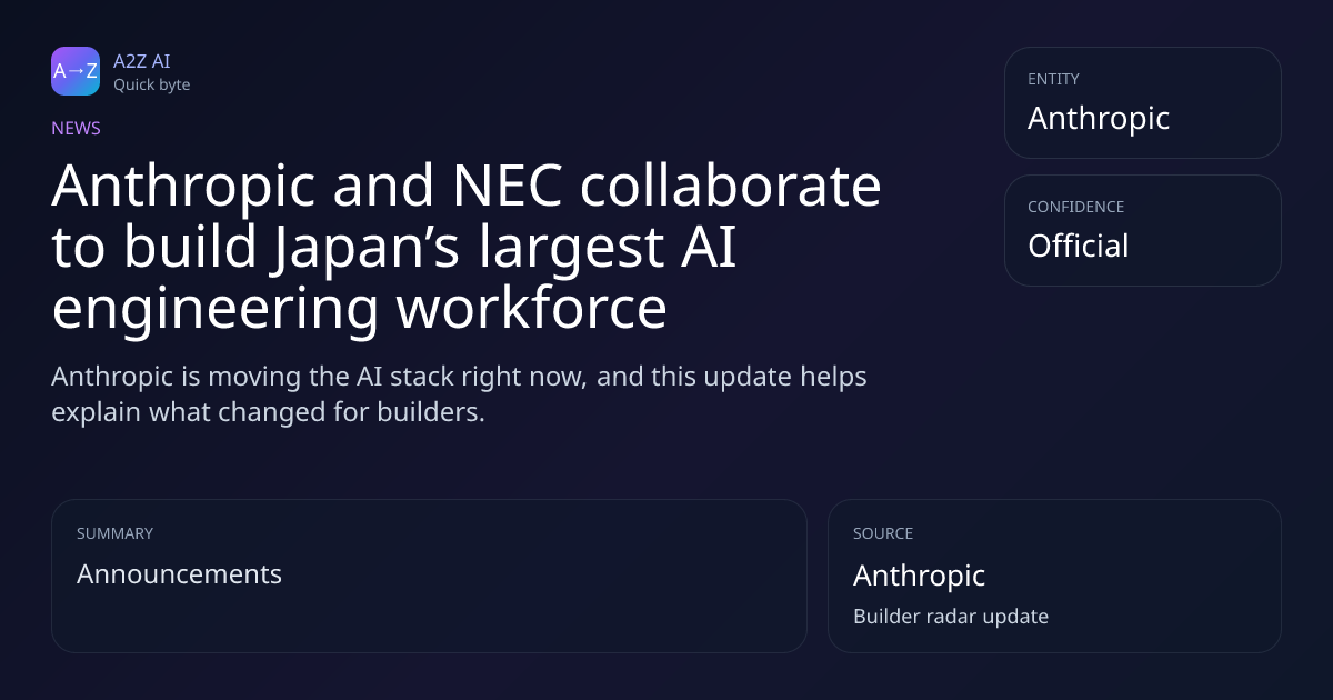 Social card: https://a2zai.ai/bytes/anthropic-and-nec-collaborate-to-build-japan-s-largest-ai-engineering-workforce-29732352/opengraph-image