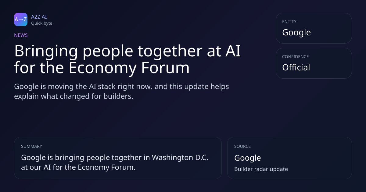 Bringing people together at AI for the Economy Forum Why it matters: Google is moving the AI stack right now, and this update helps explain what changed for builders. Source: Google https://a2zai.ai/bytes/bringing-people-together-at-ai-for-the-economy-forum-de9f1f45