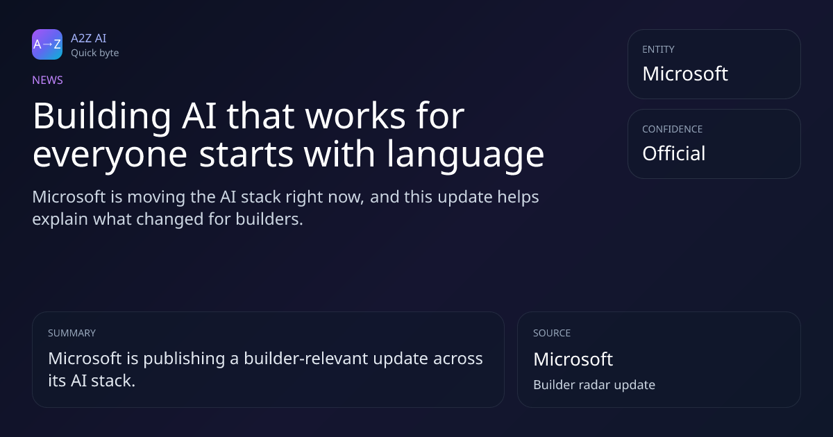 Building AI that works for everyone starts with language Why it matters: Microsoft is moving the AI stack right now, and this update helps explain what changed for builders. Source: Microsoft https://a2zai.ai/bytes/building-ai-that-works-for-everyone-starts-with-language-e8b...