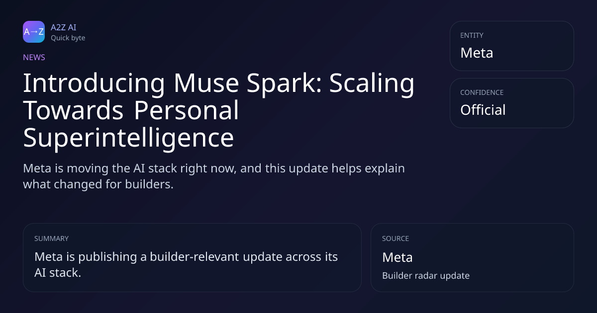 Introducing Muse Spark: Scaling Towards Personal Superintelligence Why it matters: Meta is moving the AI stack right now, and this update helps explain what changed for builders. Source: Meta https://a2zai.ai/bytes/introducing-muse-spark-scaling-towards-personal-superintelli...