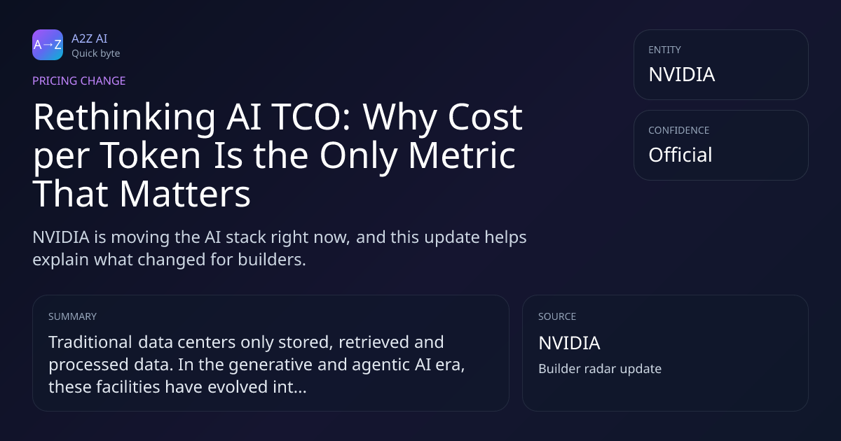 Rethinking AI TCO: Why Cost per Token Is the Only Metric That Matters Why it matters: NVIDIA is moving the AI stack right now, and this update helps explain what changed for builders. Source: NVIDIA https://a2zai.ai/bytes/rethinking-ai-tco-why-cost-per-token-is-the-only-metr...