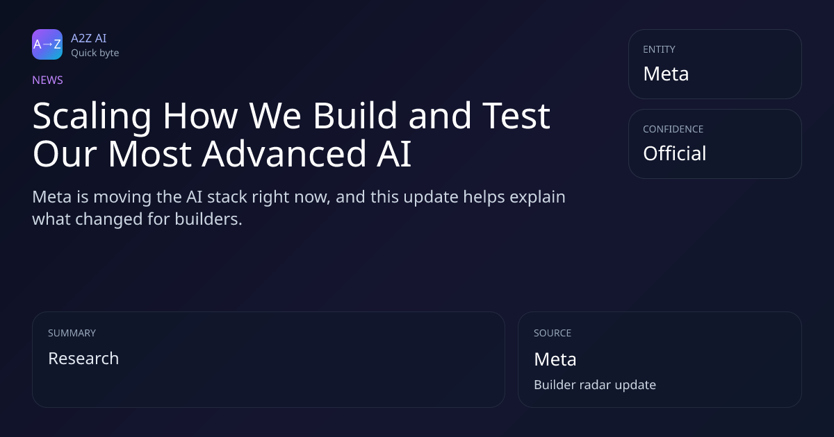 Scaling How We Build and Test Our Most Advanced AI Why it matters: Meta is moving the AI stack right now, and this update helps explain what changed for builders. Source: Meta https://a2zai.ai/bytes/scaling-how-we-build-and-test-our-most-advanced-ai-5b07b9b5