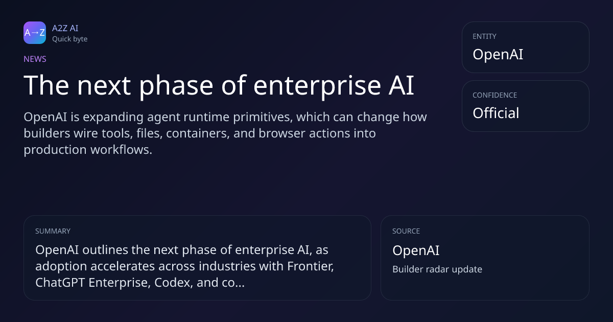 The next phase of enterprise AI Why it matters: OpenAI is expanding agent runtime primitives, which can change how builders wire tools, files, containers, and browser actions into production workflows. Source: OpenAI https://a2zai.ai/bytes/the-next-phase-of-enterprise-ai-42e...