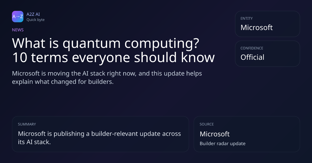 What is quantum computing? 10 terms everyone should know Why it matters: Microsoft is moving the AI stack right now, and this update helps explain what changed for builders. Source: Microsoft https://a2zai.ai/bytes/what-is-quantum-computing-10-terms-everyone-should-know-994d...