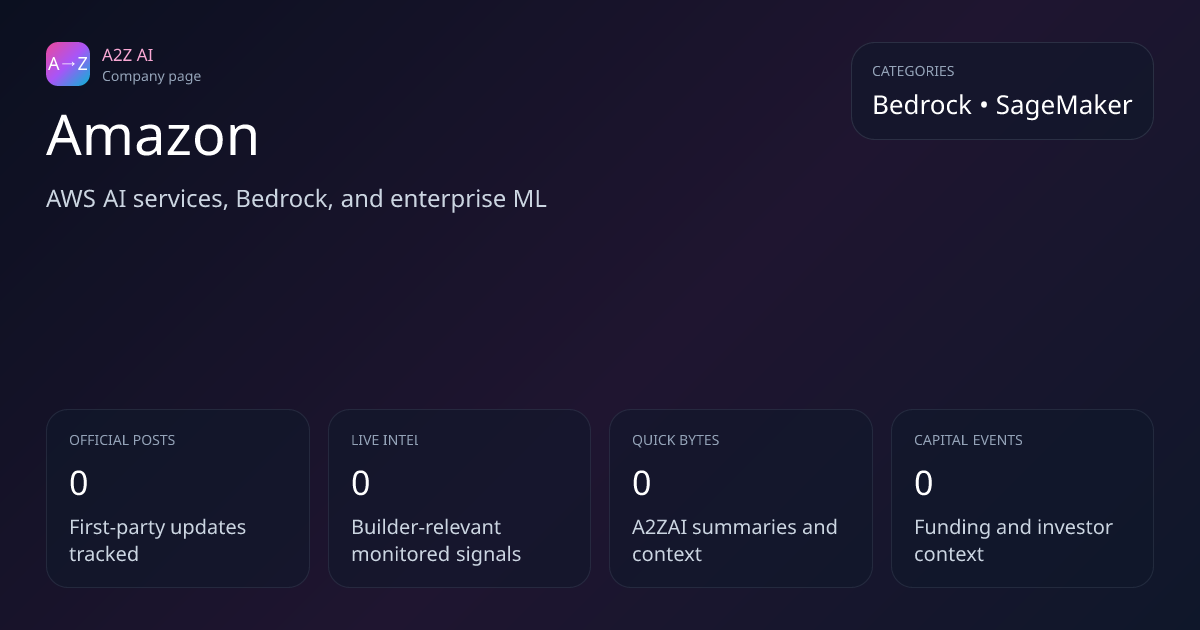 Amazon on A2ZAI Latest official posts, live builder intel, and company context in one place. https://a2zai.ai/companies/amazon
