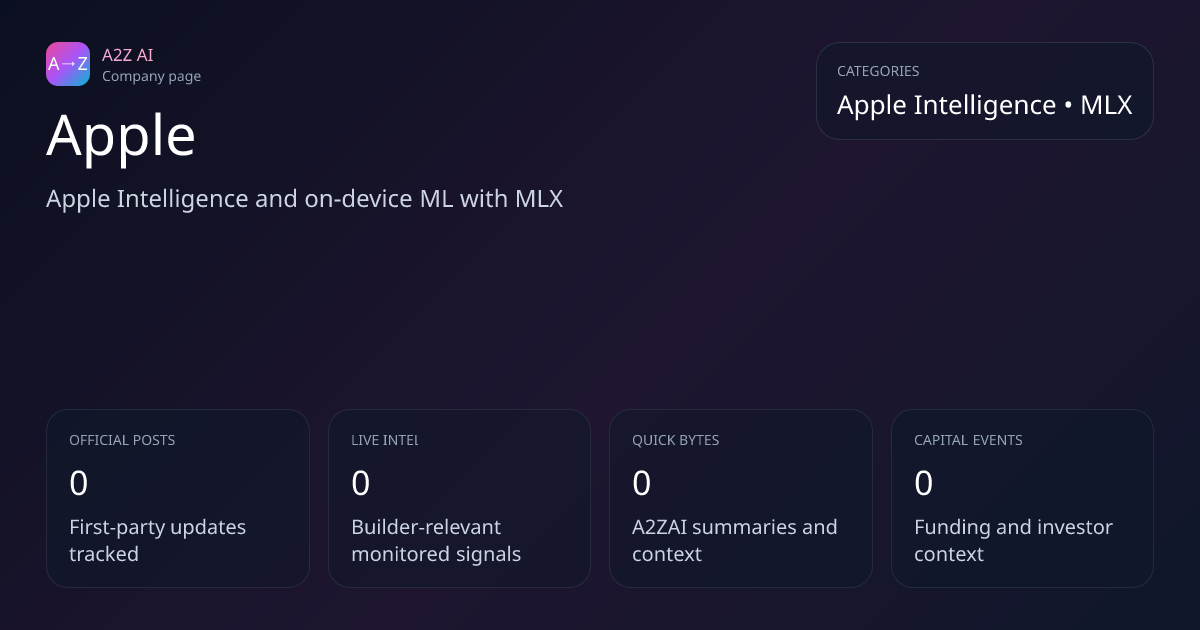 Apple on A2ZAI Latest official posts, live builder intel, and company context in one place. https://a2zai.ai/companies/apple